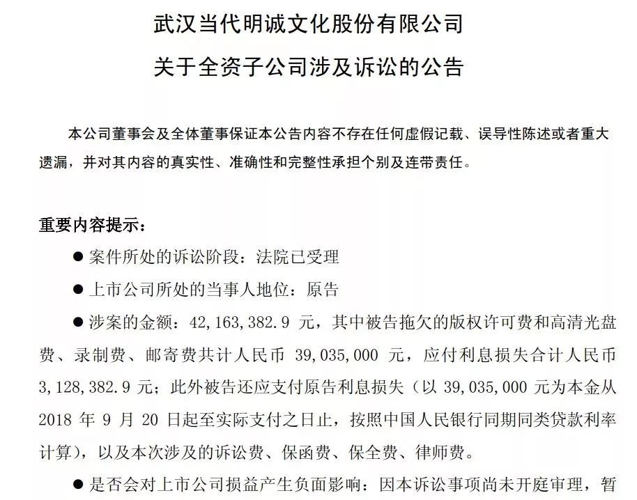 9月21日,上市公司当代明诚发布公告,称旗下全资子公司强视传媒就《美人私房菜》费用问题起诉安徽卫视,追讨版权许可费和高清光盘费、录制费、邮寄费共计人民币 3903.5万元。这则公告,让存在已久的电视台拖欠购剧款问题浮出水面。
