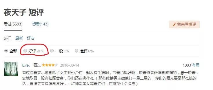 《夜天子》是东仑第一部网剧,无论是弹幕观众还是普通网友,都给出了相当高的评价。尤其体现在豆瓣评分上,对于一向对国产IP改编剧打低分毫不手软的豆瓣网友来说,91%的好评率是一个非常不错的成绩。《夜天子》能俘获这部分观众,靠的不是顶级IP+流量演员的简单堆砌,而是满满的诚意。