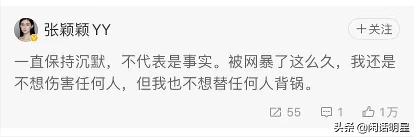 大S嫁人的事情,逐渐平息,张颖颖又忍不住跳了出来。前天深夜,她在个人社交平台上发文,说她自己是因为不想伤害别人,也不想替别人背锅,才沉默了这么长时间。这几句话已发布,就引起了不少网友的兴趣。不过,大家弄不明白,她到底是想说什么。她说出真相,会伤害到谁?又会替哪个人背锅?