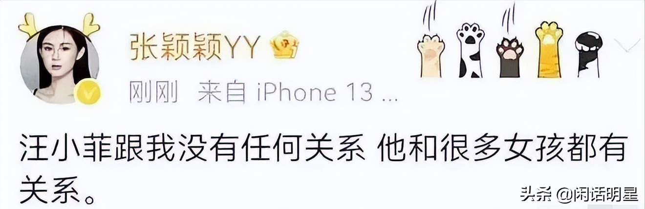 前几个月,网上说,张颖颖和汪小菲闹矛盾时,否认她为汪小菲堕过胎。她还说:“汪小菲跟我没有任何关系,她和很多女孩都有关系!”