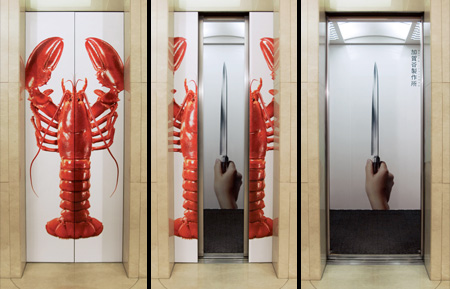 日本的创意电梯广告,用来推销Kagatani牌厨房刀具。