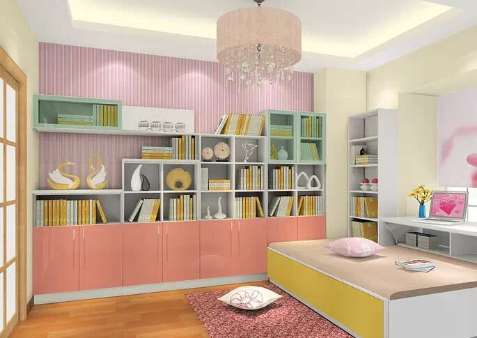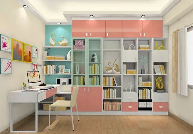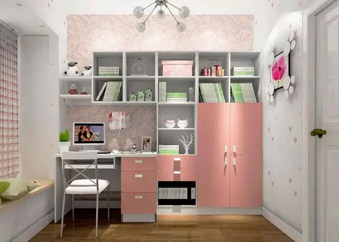 女生多数都是爱静,一个小书房小角落就可以满足了。边角部位采用略具弧度的流线型设计,圆润有安全感,强调少女情怀,感觉很甜蜜。