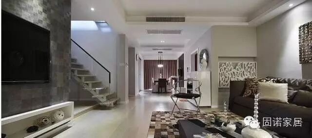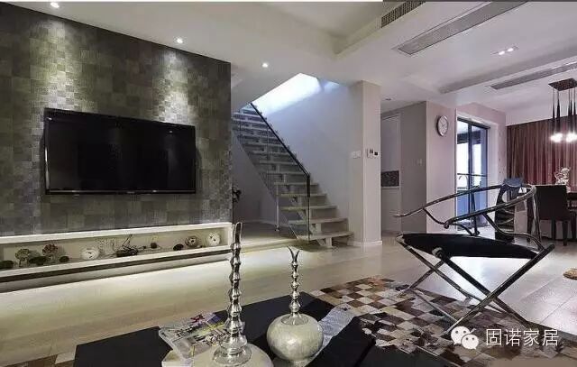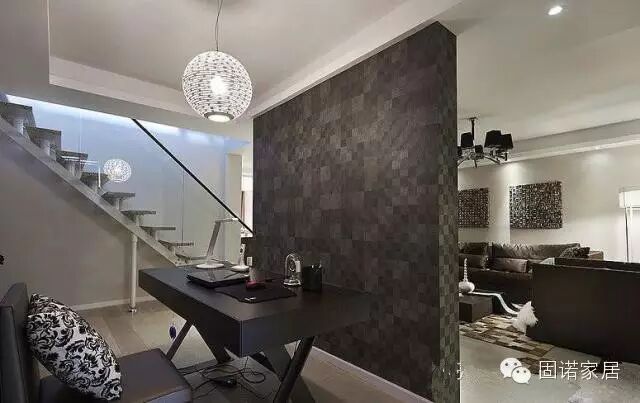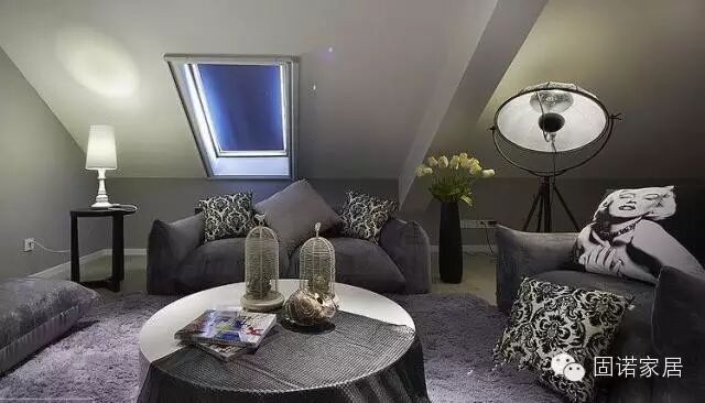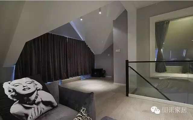 设计要点三:注意墙面的装饰 普通的LOFT,一面墙的面积比平层的墙面要大,但是层高只有2.5米左右,会有一定的压抑感,因此墙面不要全部纯白,应该有更多的颜色。吊顶也是一个问题,很多家庭喜欢客厅上方的吊顶高出一些,四个边稍微低一些,再打上一圈灯带,这样显得房间很高。LOFT的层高较低,但是也有办法从视觉上拔高墙面高度,比如刷墙时,到距离顶部约10公分的位置不再刷了,保持原来的颜色,这样墙面会出现两种不同的颜色,从视觉上墙面高度会增加。