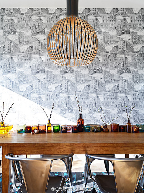 门口玄关处局部刷黑,很有趣的做法,玄关本来就无所谓采光,这样做反倒显得很酷。关于玄关可以设计的夸张一些,我们之前也说过几次,记得不?