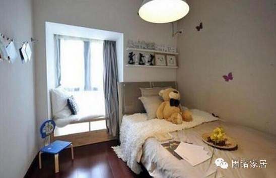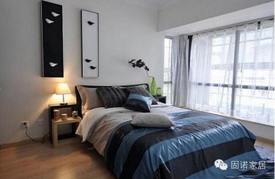 白色的背景墙和顶部颜色一致,显得整个卧室很干净。米色的窗帘在窗外阳光的照射下显得很淡雅。木质的地板看起来很有质感,同时又把整个卧室衬托的很温馨。