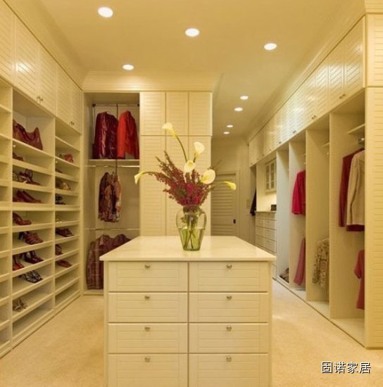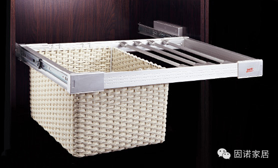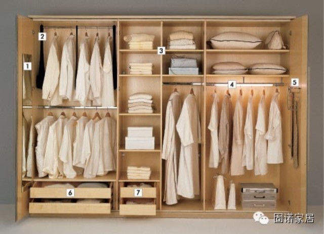 首先,抽屉层板是衣柜内部分割空间最主要的配件,一般平稳的层板最适合存放针织类以及衬衣类衣服。层板之间相隔的距离不要太大,否则叠放的衣物太高。网篮用来放T恤,看起来清楚,前面透明的抽屉也能达到这种效果。层板和抽屉可以选择能完全拉出的款式,这样最深处存放的东西也能轻松取放。衣柜中个别层板可以设计成活动的,当衣物数量增减的时候,可以随时调整位置。