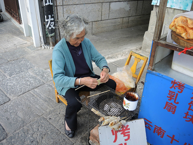 在大理古城,走到街头你几乎随处都可以买得到烤乳扇。