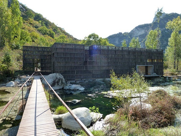 篱苑书屋来头很大,在米国网站评选的全球最美十八座图书馆里排名第八,国内也仅此一座入选。书屋最大的特点是强调与大自然气息的协调,选址依山傍水,整个外表更是用了4.5万根柴火棍做装饰。废话不多直接上图: