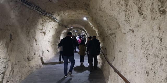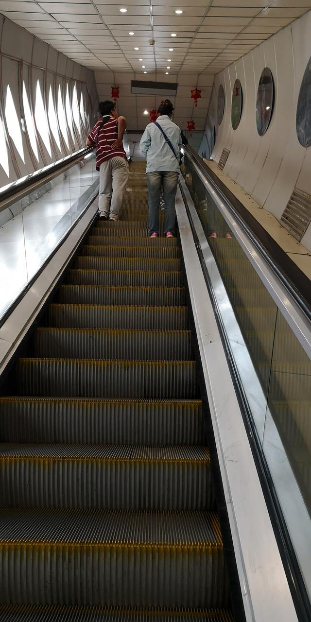 坐过几段电梯,再走一段这样的路,就穿过“巨龙”而出。