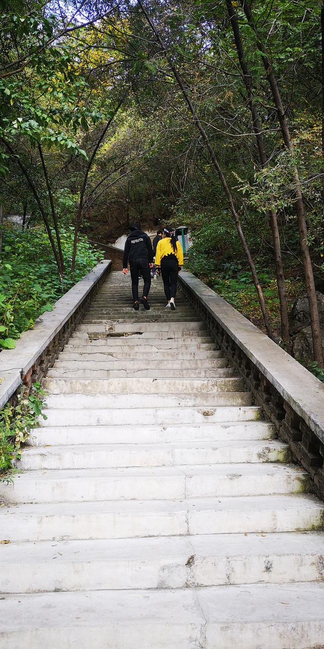 跟着游客们继续往前走,正值秋季,景区的植被还比较茂盛。