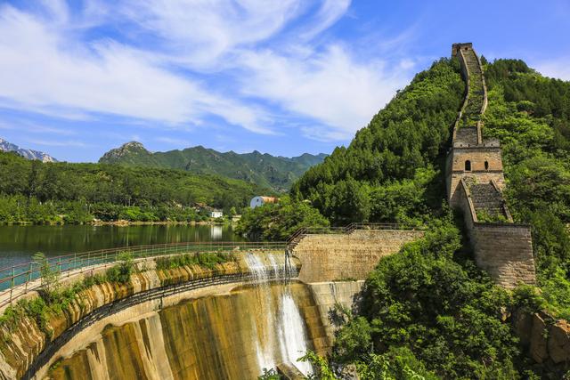 “二绝”湖水将长城自然断开,形成长城戏水、水没古城垣的奇特景观。