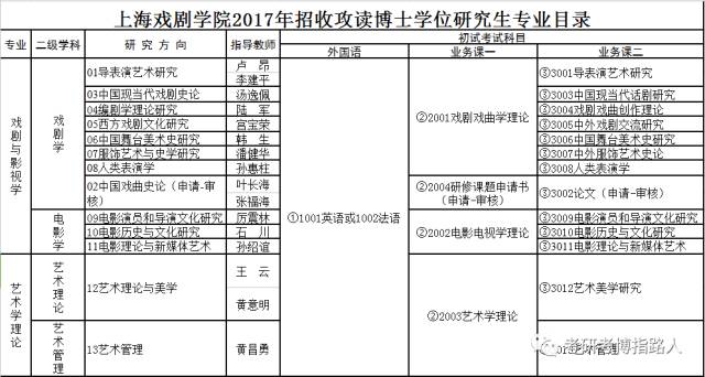 一、2017年上海戏剧学院考博招生目录:(2018年静待...)