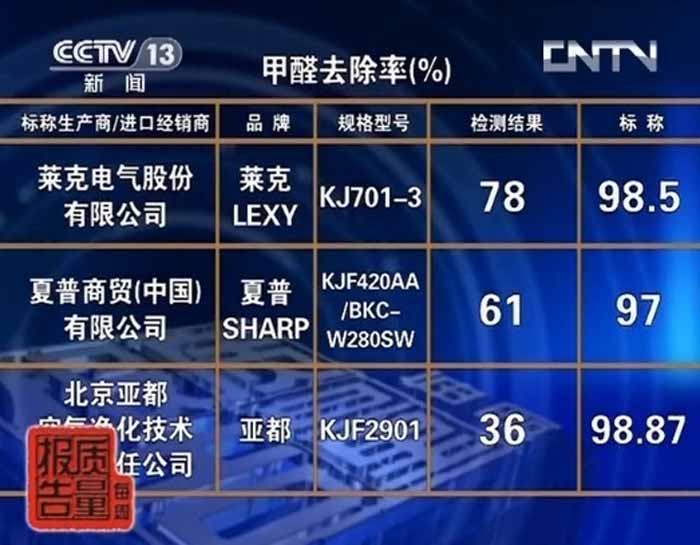测试结果表明,只有两台样品甲醛净化效率达到97%,而标称远大空品科技有限公司生产的“远大”牌,型号为TA400、价格为5880元的空气净化器产品甲醛净化效率仅为9%;