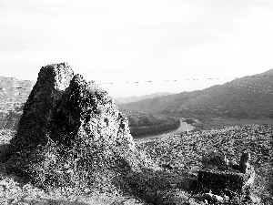 铁城其实是半山腰处的一个台地。我们所走的小路,就是当年守军曾经无数次往来的小道。城修建在台地中一块相对高的台子上,从一处缓坡上去,眼前是一处极其广阔的平地,有数千平方米之广,尽管已经变成了农田,但我们依旧能感受出古城当年的情形。