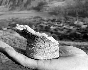 刘虎林捡到一块黑釉高脚器皿残片,很是高兴,准备带回馆里作为标本。高脚器皿显然是游牧民族使用的器物,底部高而厚,是为了便于放在草地上,盛放食物不倒。这块残片和鬼章究竟有没有关系我们就不知道了。