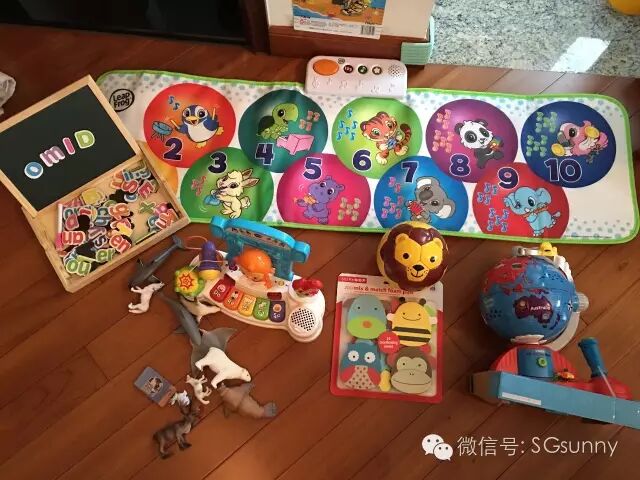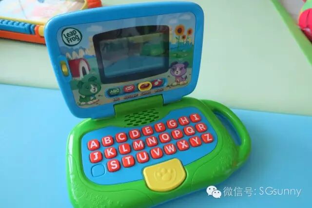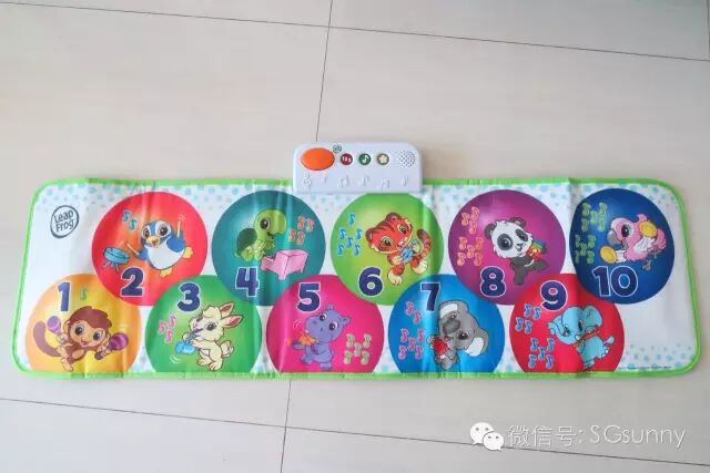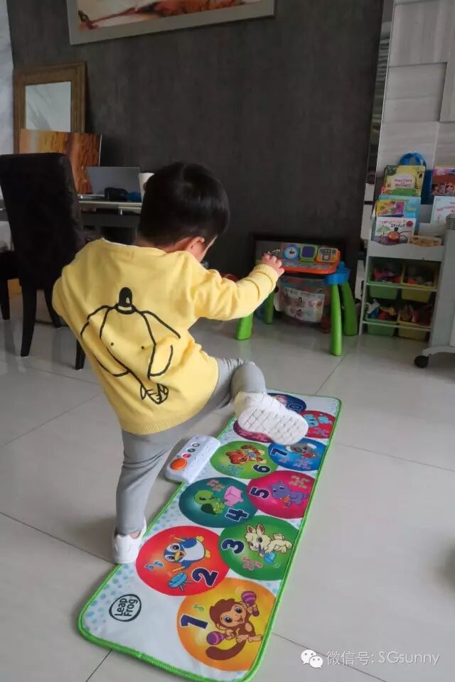 也因为这个玩具我认识了leapfrog这个品牌,这个牌子主要都是帮助小朋友学习英文以及单词的玩具,还有小电脑和其他ABC拼写玩具。在玩具展促销时候买的这个品牌的跳舞垫,也是omi最爱的玩具之一: