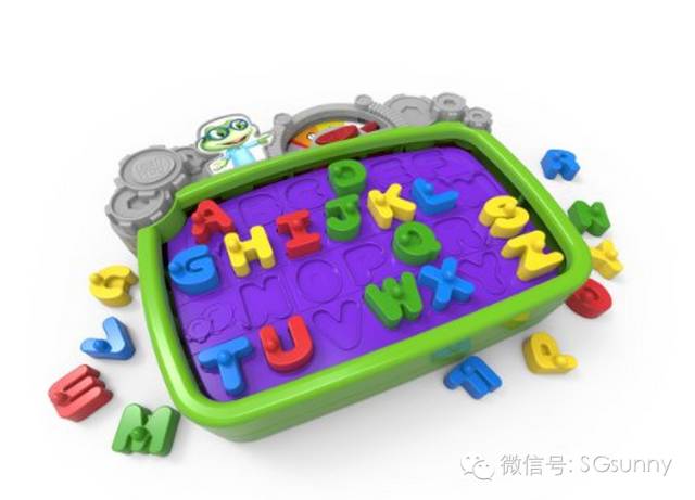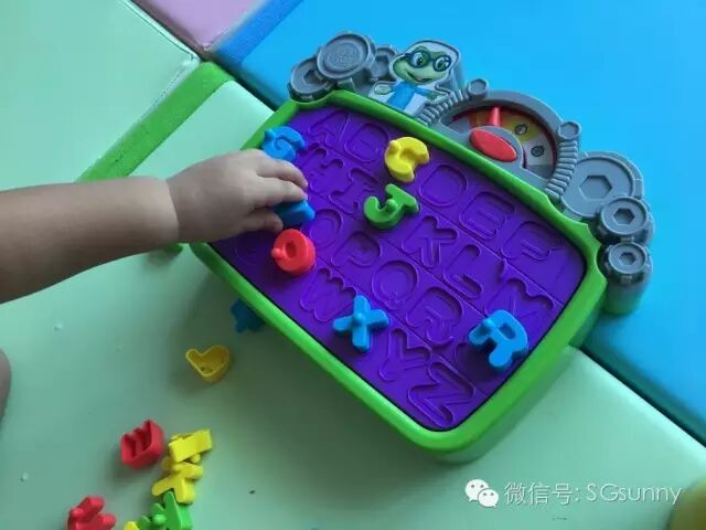 这个玩具是当时为了凑数买的,买回来其实很失望,因为没有音乐,就是26个字母还有对应的凹槽,给小朋友比赛看谁先放进去,有个计时器,仅此而已!我心想,怎么会这么无聊。。 但是一回来omi就足足玩了一个小时!!史上玩的最久的游戏吧! 因为把这些字母放在凹槽里,对他不灵活的小胖手来说,真的不是一件容易的事情。有时候放好了这个,那个又被碰掉了,就这样来回弄,确也让他安安静静了好长一段时间。直到最近我看书上说,虽然人手只占身体表面积的1%,但手在大脑皮层上所占有的运动和感觉区域几乎能达到1/3或者1/4,所以这类型要求精细手部运动的游戏对宝宝的大脑发展很有帮助。看完这段以后,这个本来我打算给1星的小玩具,升级3星了~~