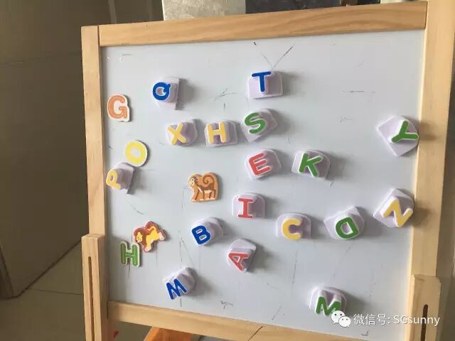 另外这些字母方块都是吸铁磁,可以放在冰箱和画画版上,我们现在用来教omi拼写简单的单词。所以这个玩具对于我家来说必须6颗星,omi字母学习的重要帮手。
