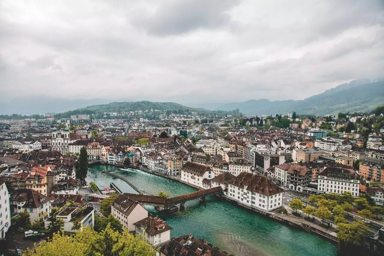 到达瑞士卢塞恩时,正下着小雨,天空阴沉。