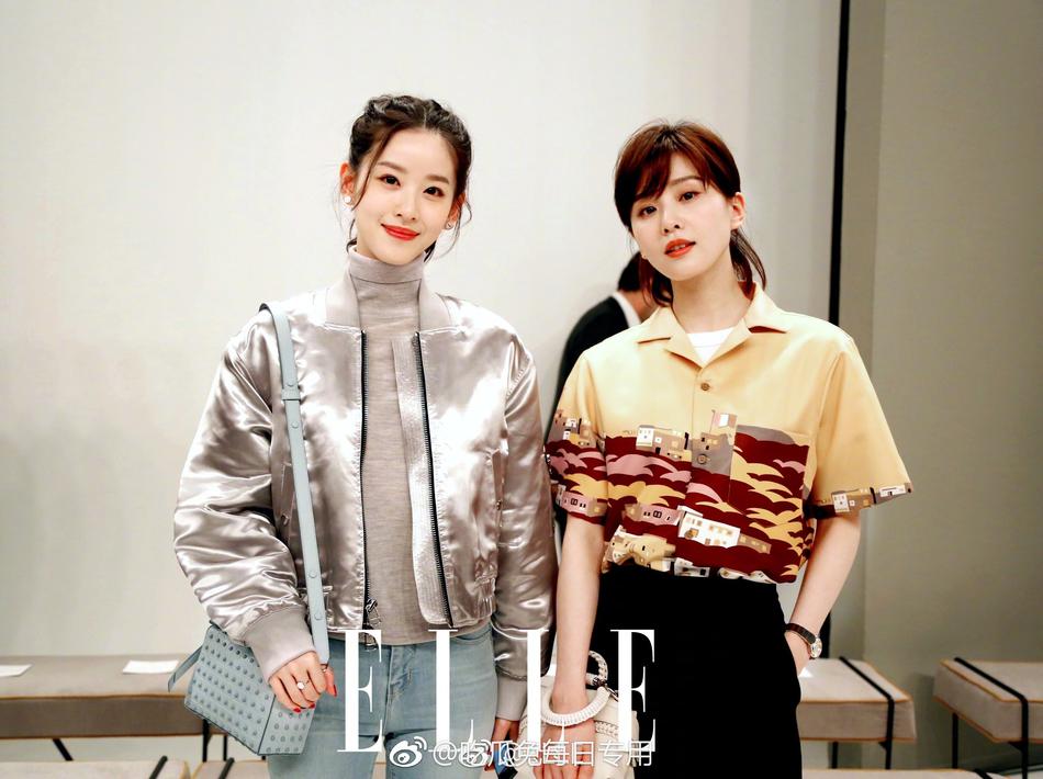 从合影来看,奶茶妹妹的身高是占优势的,比刘诗诗高了一个耳朵的距离。但两个人的着装却一个是秋冬一个是春夏,奶茶妹妹银色太空感的夹克配同色系高领毛衣,十分时髦,但下半身的牛仔裤却轻松休闲。